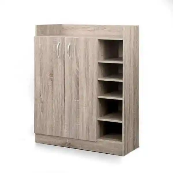 - As we provide you with the latest design of the modern shoe cabinet made of wooden shelves, in a wooden color, and divided into two parts for many uses.